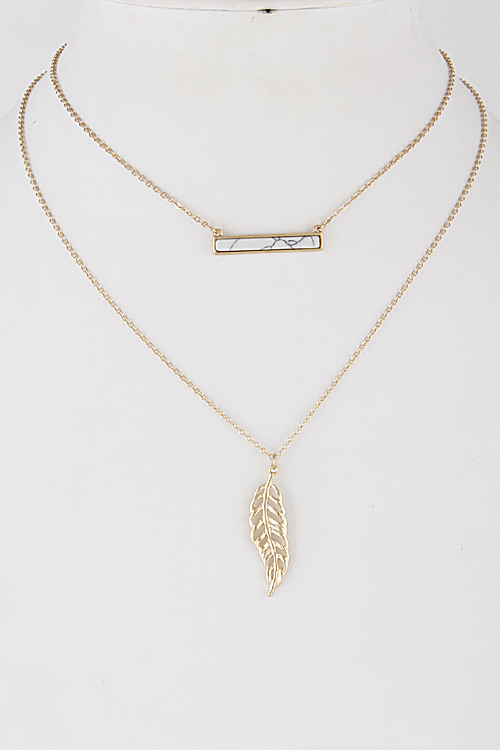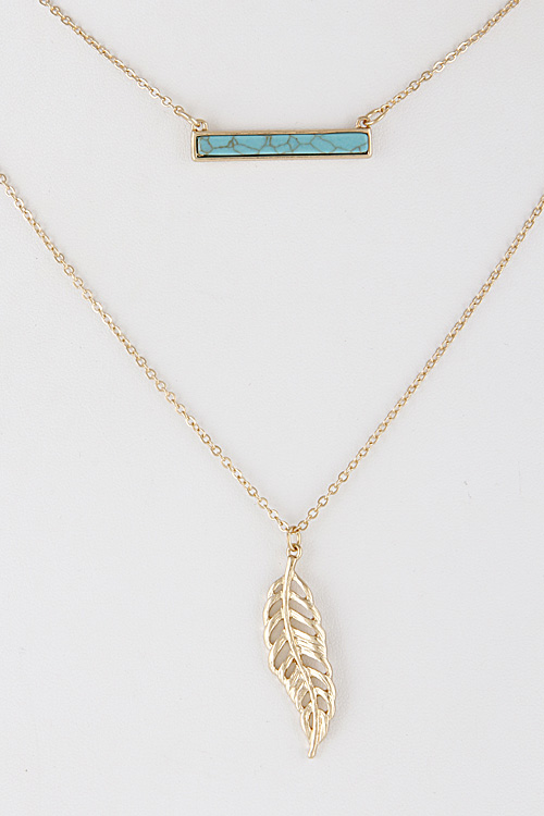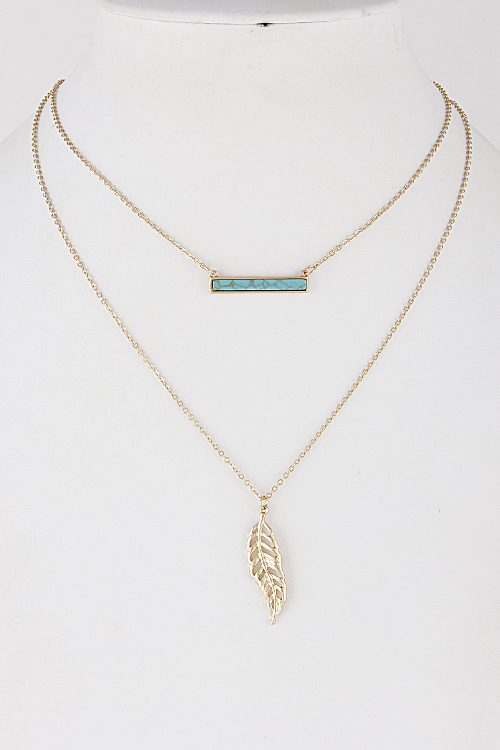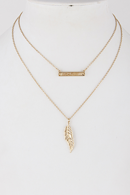 - * Multi Layer Choker Necklace With Bar & Leaf 6ICE6 * 20"approx.