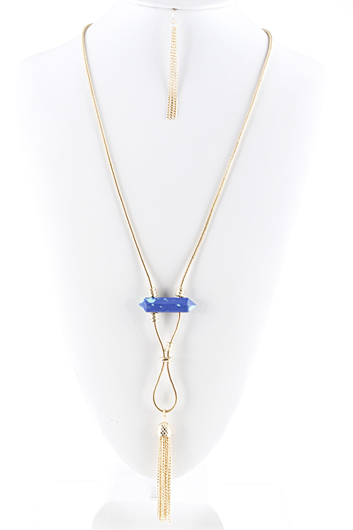 - * Delicate Long Blue Stone Bead Necklace 5GAI5 * 26 x 6"approx.