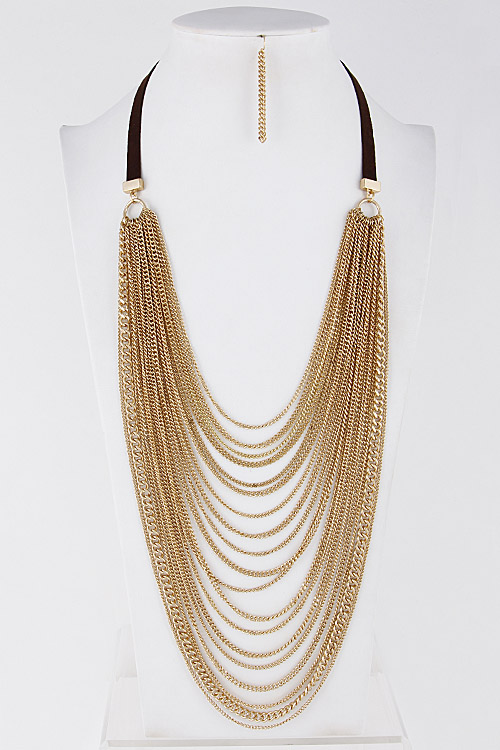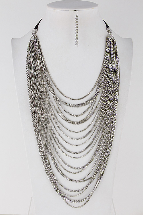 • * Thick Fringed Drop Formal Necklace Set 6KAC4 * 1 x 26" approx.