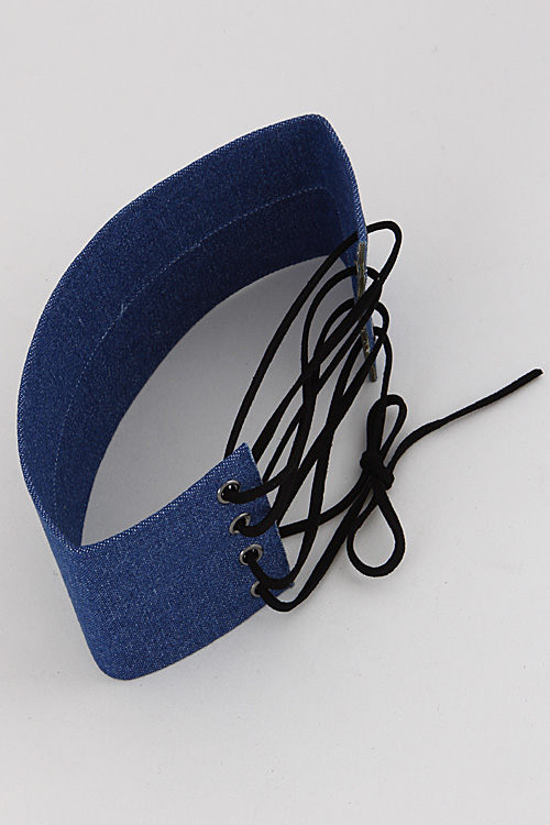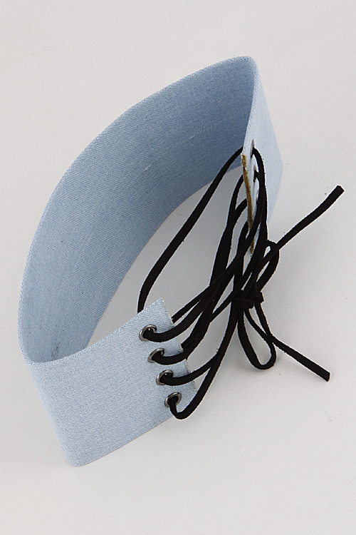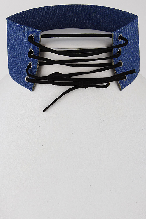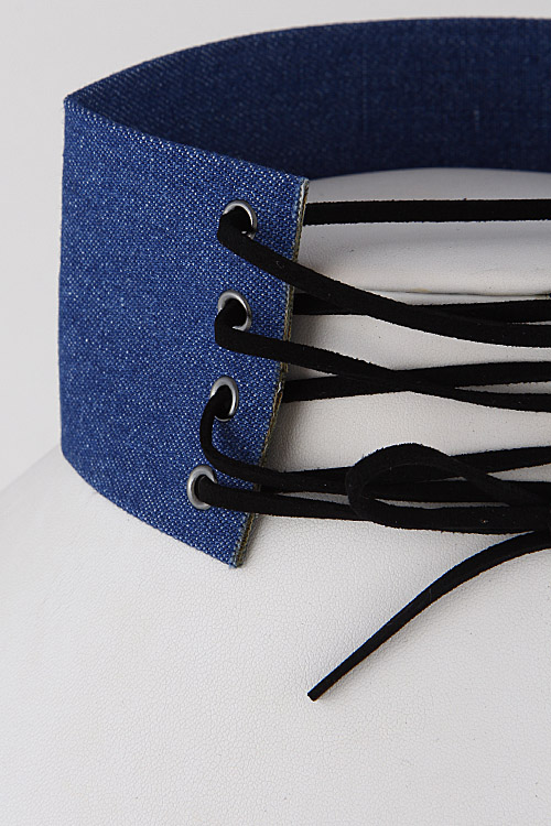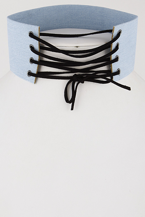 • * Light Denim Inspired Corset Choker Necklace 6KAE2 * 2.4 X 14" approx.