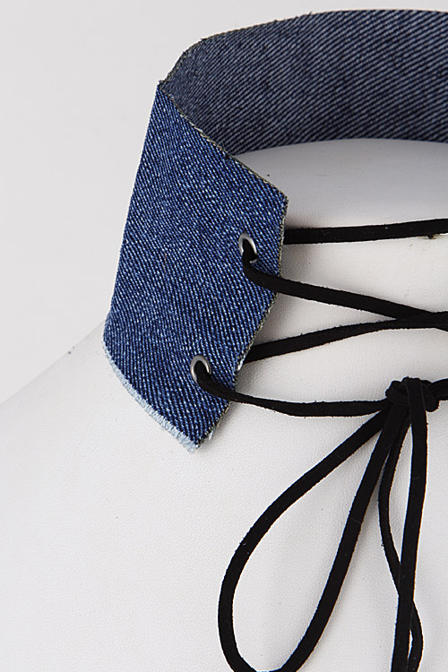 • * Denim Inspired Corset Choker Necklace 6JCC1 * 2.4 x 14" approx.