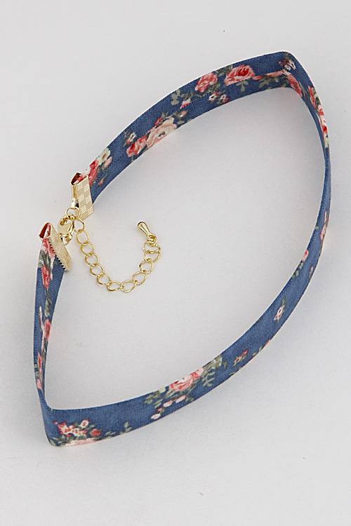 - * Flower Inspired Denim Choker Necklace 6KCA10 * 0.6 X 12" approx.