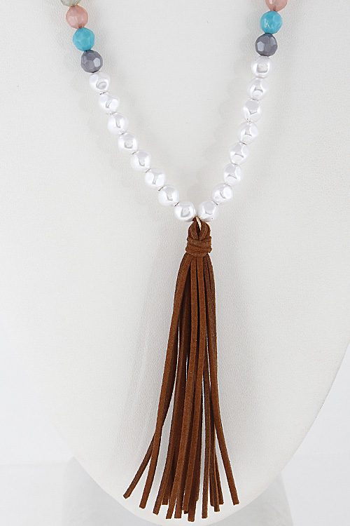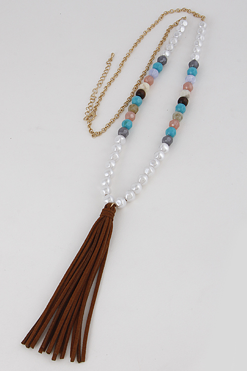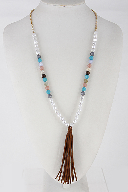 - * Long Bead Necklace With Tassel 6FCD9 * 28" approx.