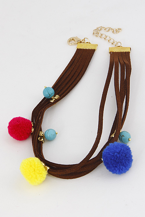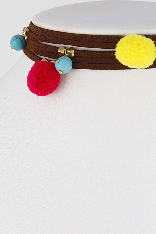 • * Simple Multi Layer Puff Ball Choker Necklace 6JBB8 * 0.8 x 12" approx.