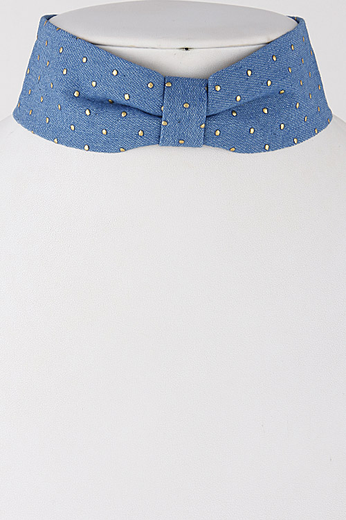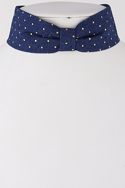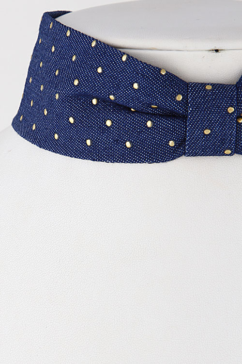 • * Cute Ribbon Denim Choker Necklace 6LBE3 * 1.6 x 12" approx.