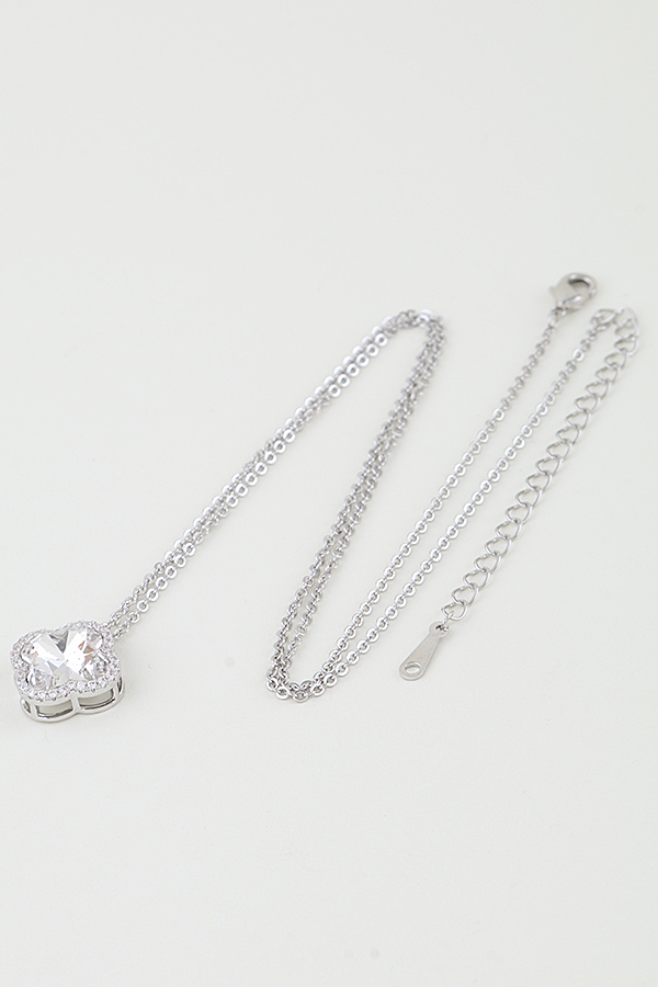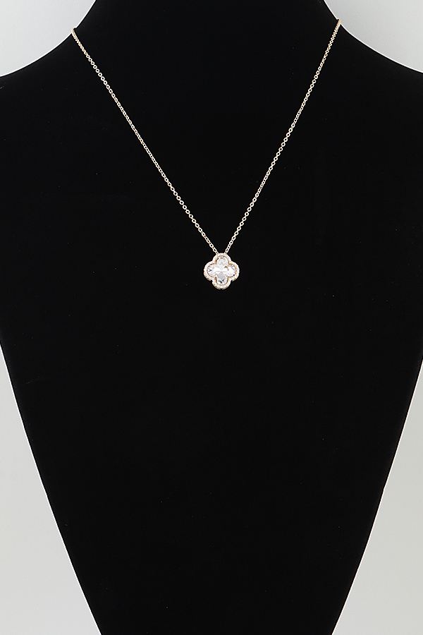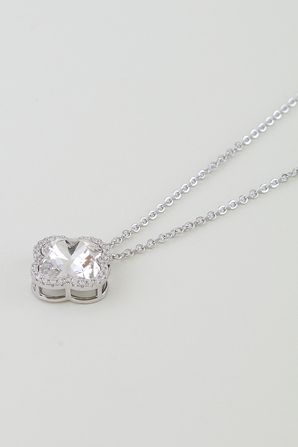 - * This necklace from H&D Accessories features a delicate, fine metal chain, centered by a single clover-shaped pendant. The pendant is encrusted with a large, faceted cubic zirconia, surrounded by a halo of smaller bejeweled accents. The design blends understated elegance with a touch of glamour, making it a versatile and timeless piece.