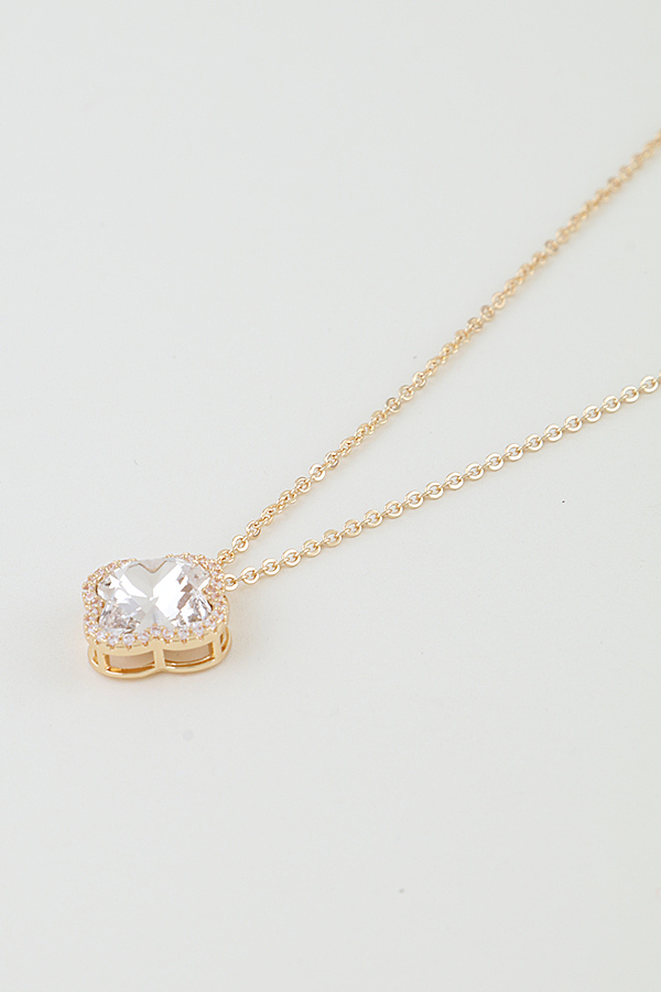 - * Bejeweled Cubic Zirconia Clover Pendant Necklace
