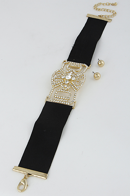 • * Rhinestone Thick Formal Choker Set 6HAB1 * 1.8 x 12" approx.