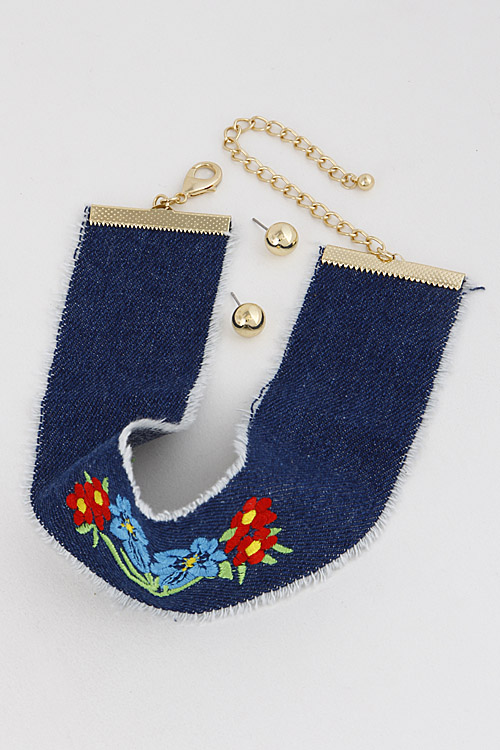 • * Nature Inspired Denim Choker Necklace 7CBA9 * 2 x 12" approx.