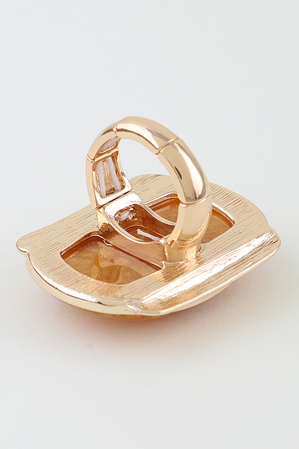 - * Make a bold, sophisticated statement with this Polished Grain Statement Band Ring from H&D Accessories. The design features a large, square-shaped centerpiece with a rich, swirling grain pattern, framed by a sleek, polished metal border that adds a modern, geometric edge. The smooth, reflective metal catches light beautifully, while the substantial, eye-catching silhouette ensures it stands out. Perfect for elevating any ensemble, this ring blends organic texture with contemporary design, making it a standout addition to your jewelry collection.