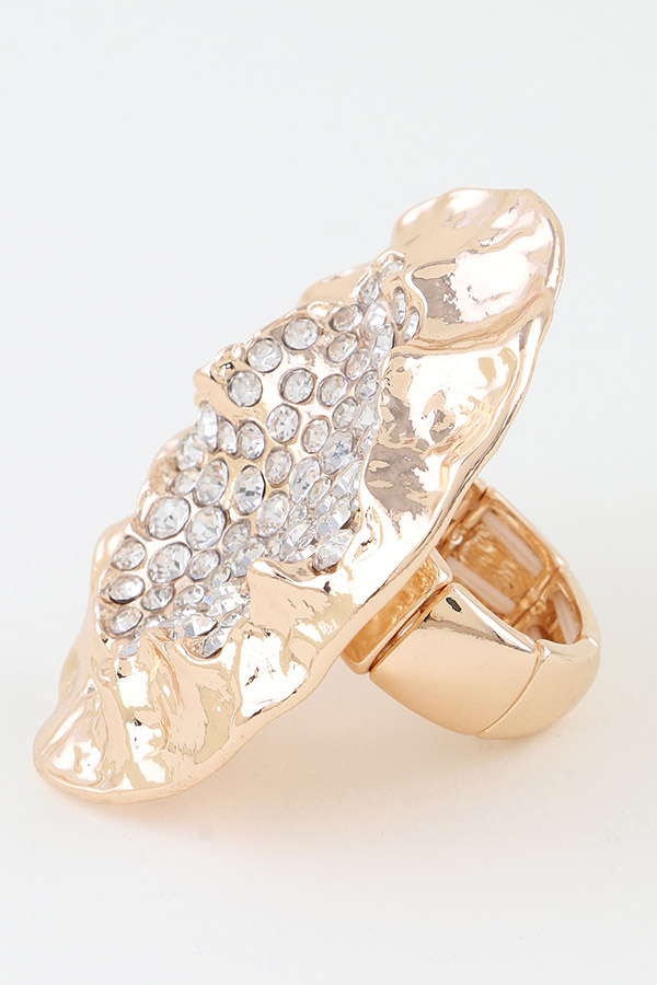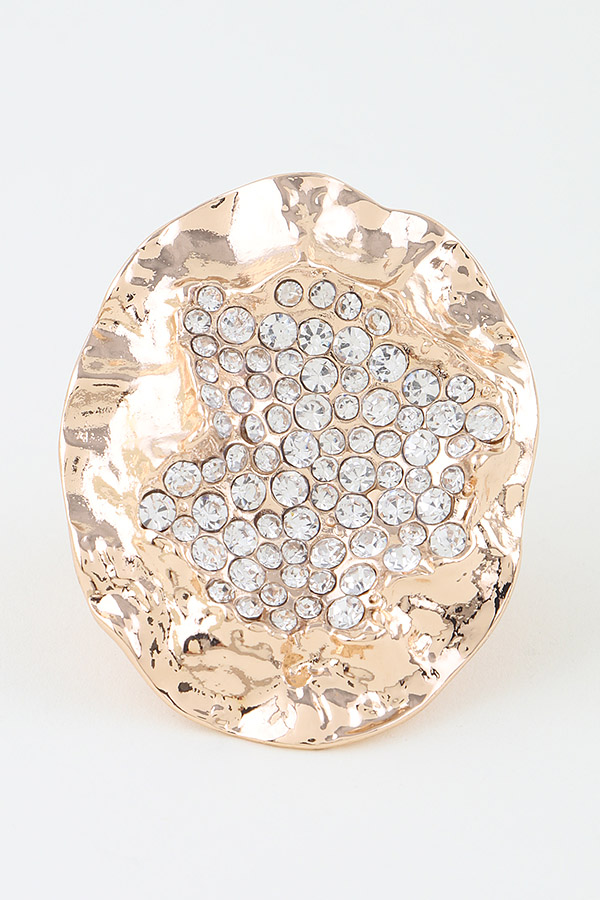 - * This is the Hammered Rhinestone Ripple Statement Ring from H&D Accessories. It has a unique hammered texture with a ripple - like design, and is adorned with sparkling rhinestones that catch the light beautifully. The ring is a perfect accessory to elevate your look for special occasions. Whether you're attending a glamorous party, going on a romantic dinner date, or simply want to add a touch of elegance to your everyday outfit, this statement ring will surely make your hand stand out and draw compliments.
