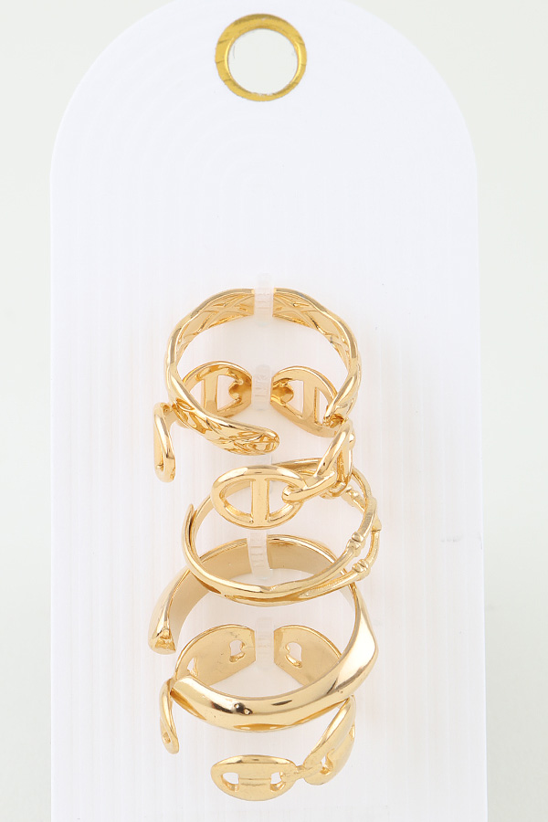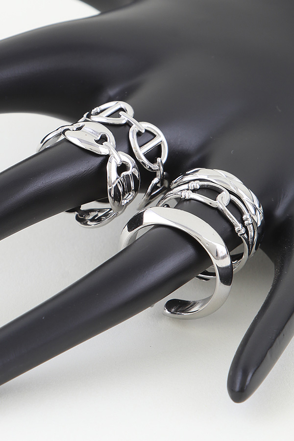 - * These are Multi Link Chain Ring Set from H&D Accessories. The set includes rings with various chain - inspired designs. Each ring showcases unique link structures, combining different metalwork techniques. The intricate patterns and diverse shapes of the rings create a layered and stylish look, perfect for adding a touch of edgy elegance to any ensemble.