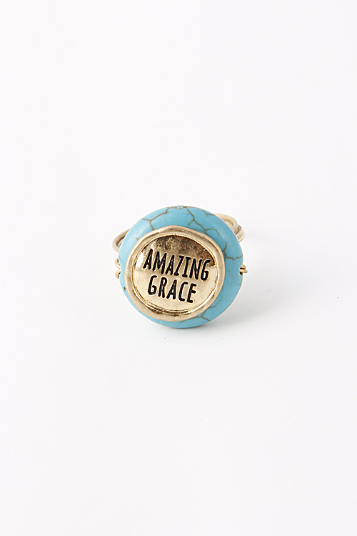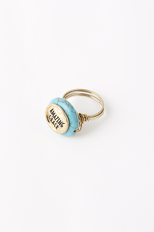 - * Amazing Grace Turquoise Stone Wired Ring 5FBH5 * .75 x .75" approx.