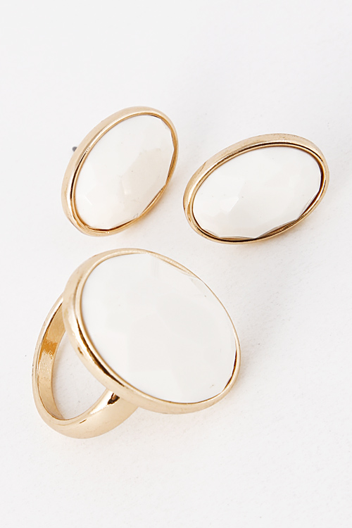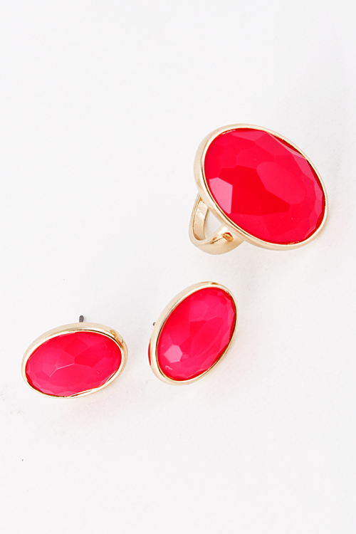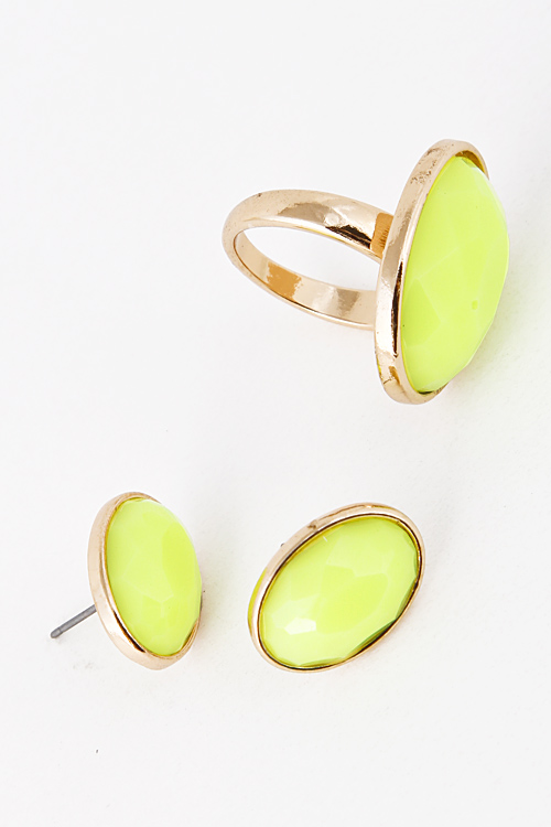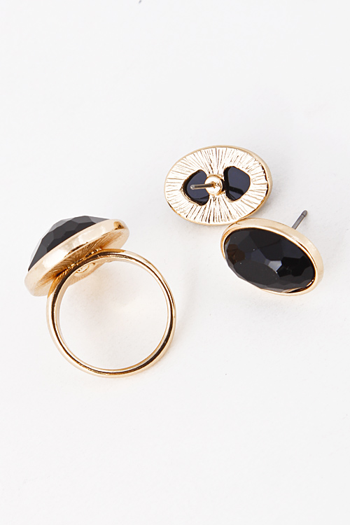 • * Color Rhinestone Carved Out Earring And Ring Set 5DAJ12 * .5 x .75/ .75 x 1" approx.
