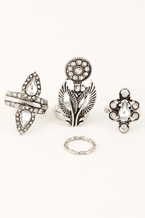 - * Earth Inspired Ring Set With Rhinestones 6BCE6