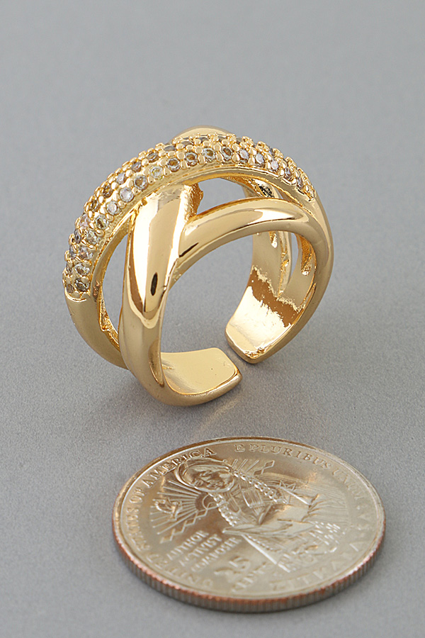 - * This Multi Jeweled Interlaced Ring from H&D Accessories showcases interwoven, polished metal bands intertwined with a pavé stone-adorned strand, creating a bold, textured silhouette ideal for elevating formal events or glamorous evening ensembles.