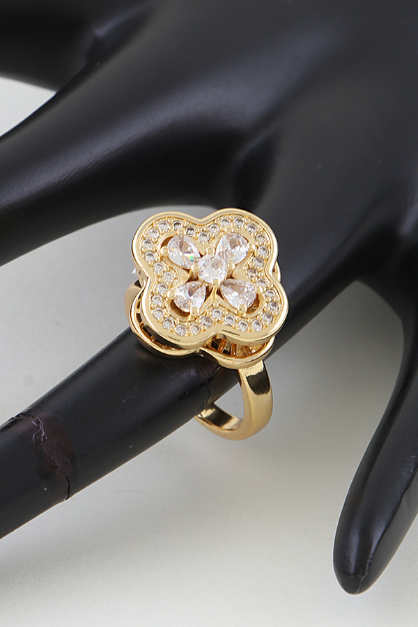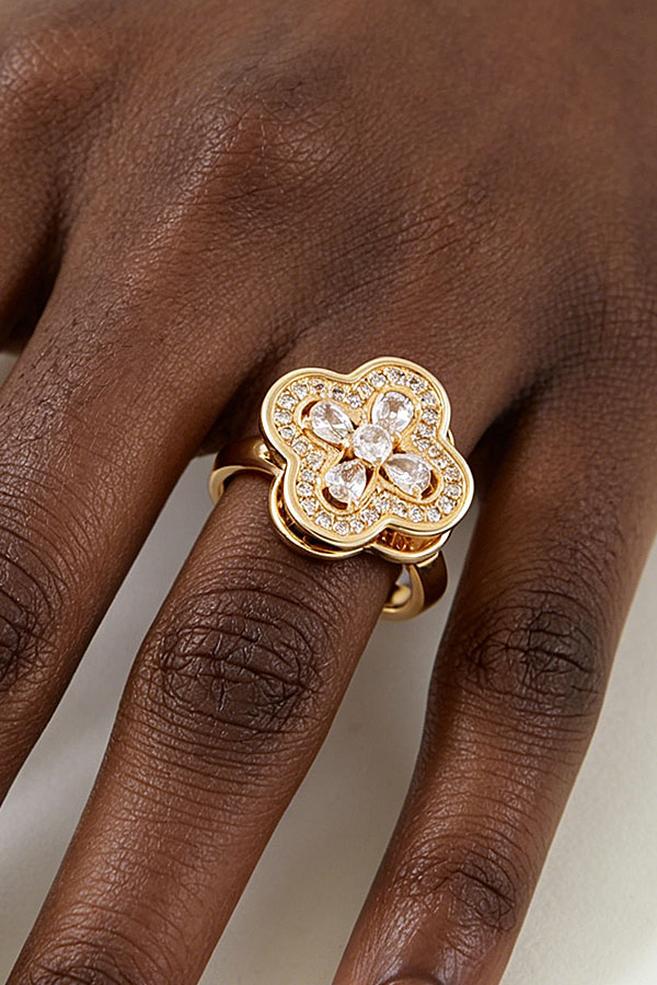 - * This Bejeweled Double Clover Ring from H&D Accessories features a delicate double clover-shaped centerpiece encrusted with faceted crystals, framed by a shimmering pavé stone border, paired with a sleek polished band, ideal for adding refined charm to everyday or special occasion looks.