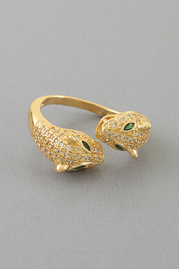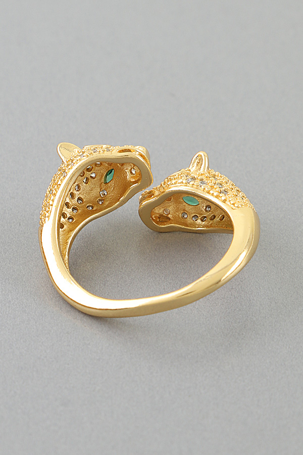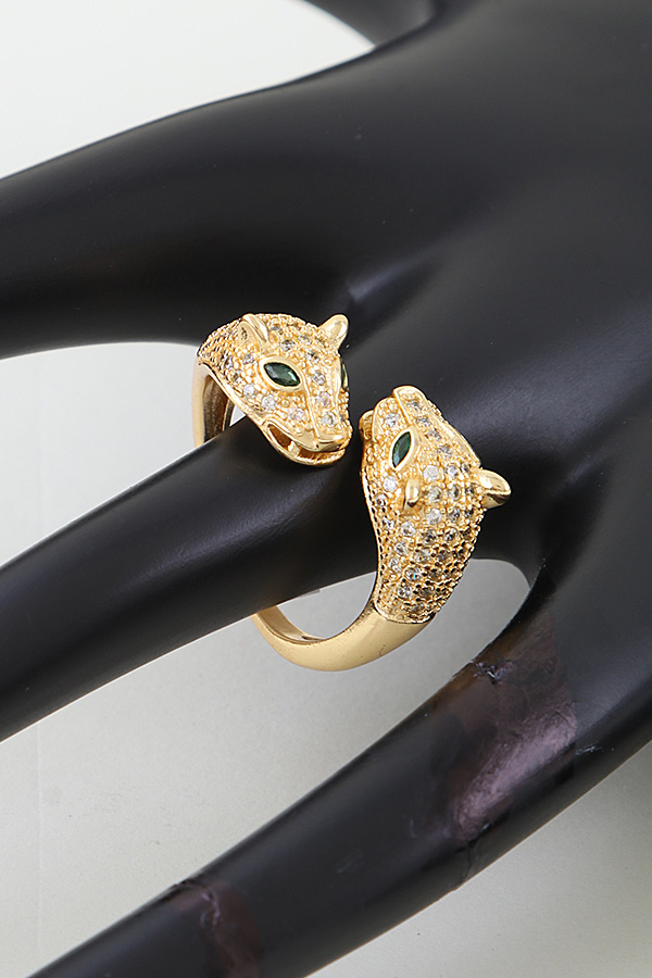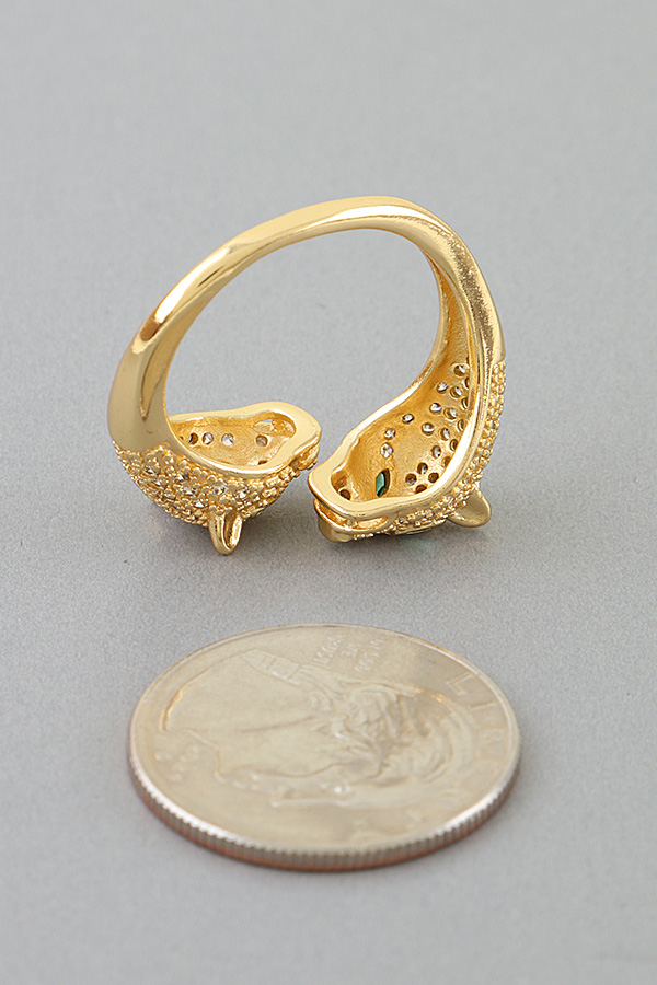 - * This Jeweled Cheetah Wrap Ring from H&D Accessories features two intricately detailed cheetah heads encrusted with shimmering pavé stones, accented by vivid gemstone eyes, wrapping elegantly around the finger to create a bold, fierce silhouette, perfect for adding wild, glamorous edge to evening or cocktail ensembles.