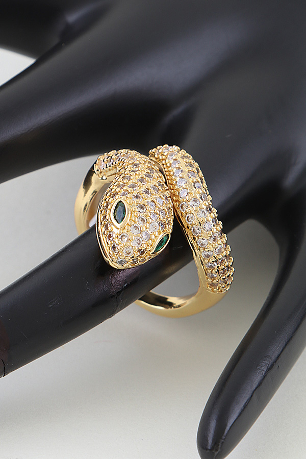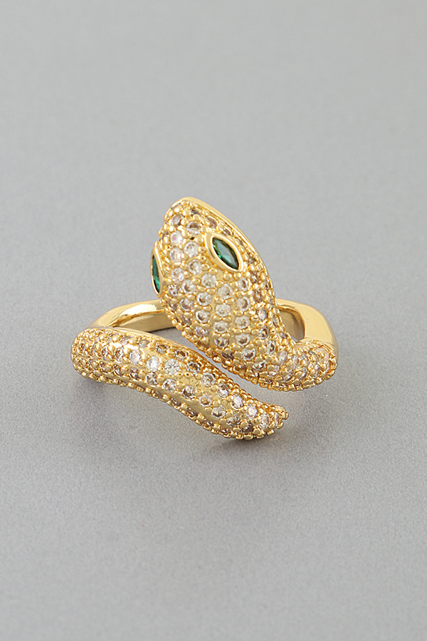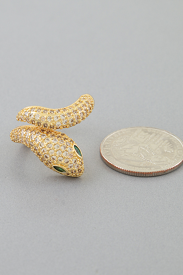 - * This Bejeweled Snake Wrap Ring from H&D Accessories features a coiled serpent design fully encrusted with shimmering pavé stones, accented by vivid gemstone eyes, wrapping elegantly around the finger to create a striking, sinuous silhouette, perfect for adding bold, mystical allure to evening or special occasion looks.