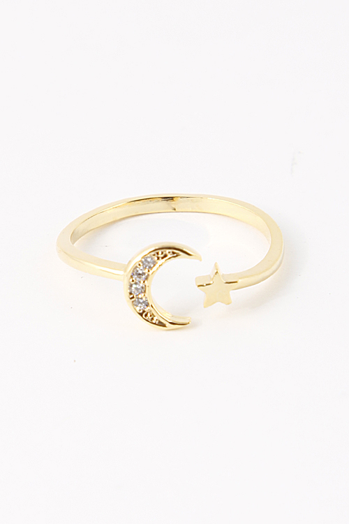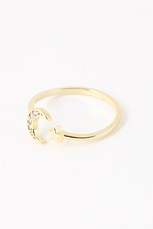 - * Crescent Moon And Star Cuff Ring 5FAE5 * .75 x .75" approx.