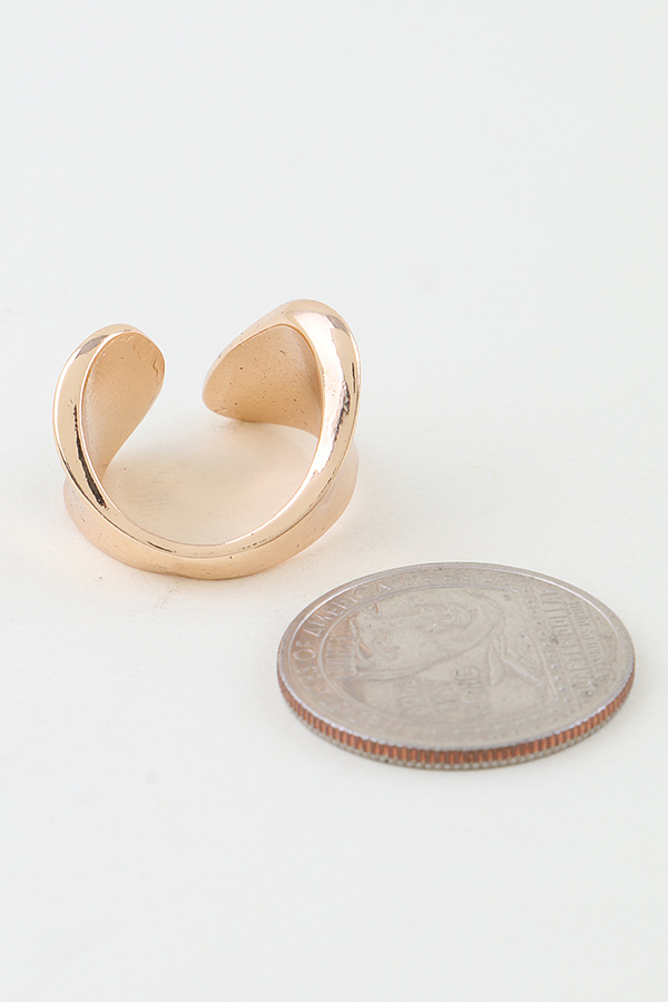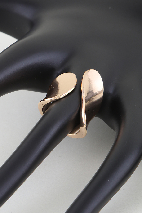 - * This Abstract Open Wrapped Ring from H&D Accessories is a striking piece of jewelry. Made with a shiny, gold - toned metal, it features two sleek, curved elements that wrap around the finger in an open - ended design. The smooth, polished surface reflects light beautifully, giving it a modern and sophisticated look. Its unique shape makes it a bold fashion statement.