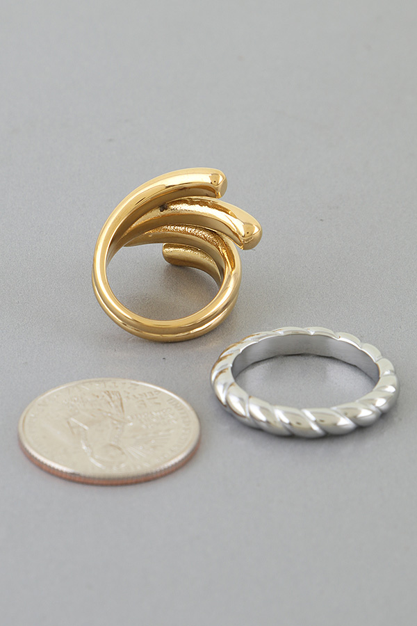 - * This is a Chic Twisted Wave Ring set from H&D Accessories. It includes rings with distinctive twisted wave designs. One ring has a multi - layered, flowing twisted wave structure, while the other features a neatly braided - like twisted form. These unique designs bring a sense of fashion and individuality, making the set stand out.