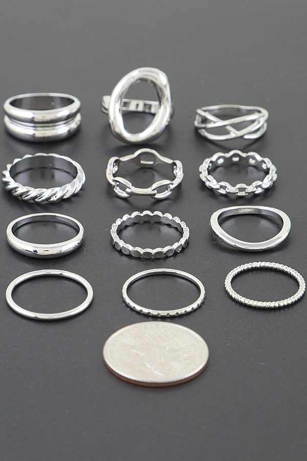 - * This is a Multi Wrap Chain Ring Set from H&D Accessories. It consists of multiple rings with diverse designs, including stacked styles, open - loop shapes, chain - linked patterns, and twisted forms. Each ring has its unique structure, allowing for versatile wearing combinations to create personalized looks.