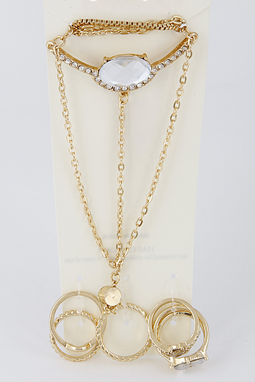 - * Bracelet With Rings Attached And Rhinestones 6DCB3