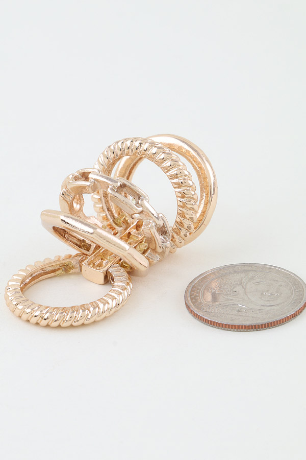- * This Multi Layered Ring Set from H&D Accessories is a stunning piece of jewelry. Comprising multiple interlocking gold - toned bands, it features a mix of textured and smooth surfaces. The intertwined design creates a sense of depth and dimension, with some bands having a twisted rope - like texture while others are sleek and polished. The overall effect is luxurious and eye - catching.