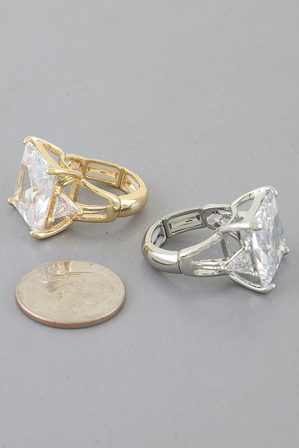 - * This is a Cubic Rhinestone Statement Ring from H&D Accessories. It features a large, square - cut cubic rhinestone as the centerpiece, held by a metal setting. The ring's design is bold, with the prominent stone and structured band creating an eye - catching look.