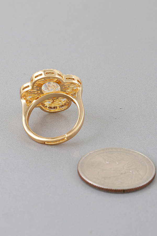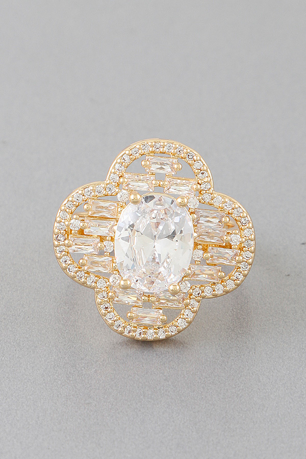 - * Introducing the "Crystallized Cubic Clover Ring" from H&D Accessories, where elegance meets boldness. This stunning gold ring, adorned with brilliant rhinestone, is designed to celebrate individuality and style. Its unique crystallized clover design shines beautifully, making it a statement piece that captures attention and admiration.