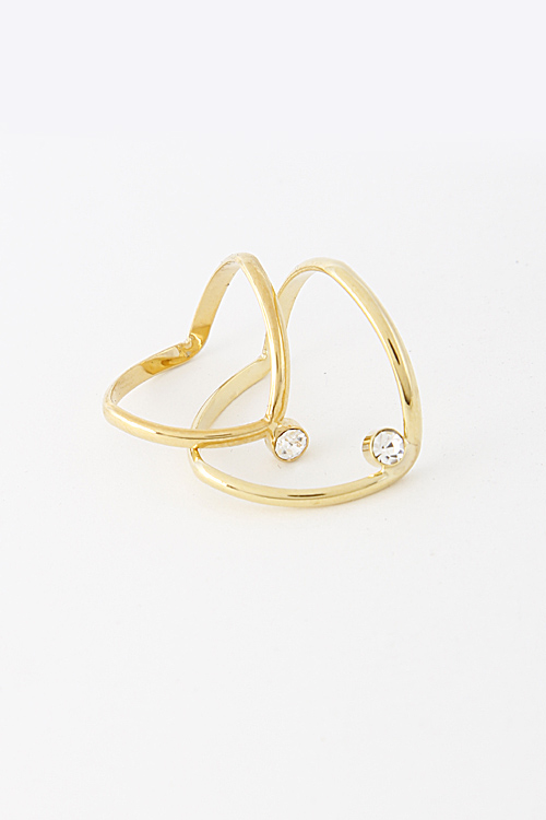 - * V Shaped Rhinestone Point Double Ring 5FCE1 * .7 x .2 / .6 x .2" approx.