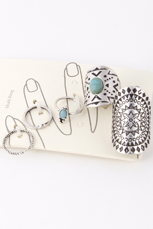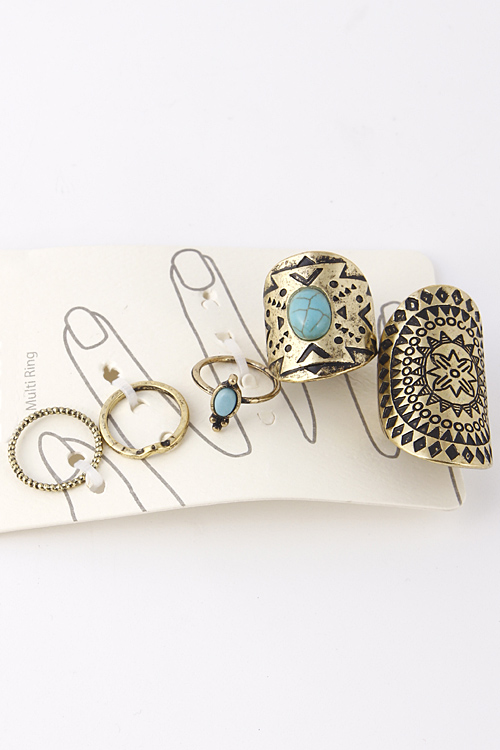 - * Turquoise Stone Bead Detailed Set Ring 5ECA11 * One Size