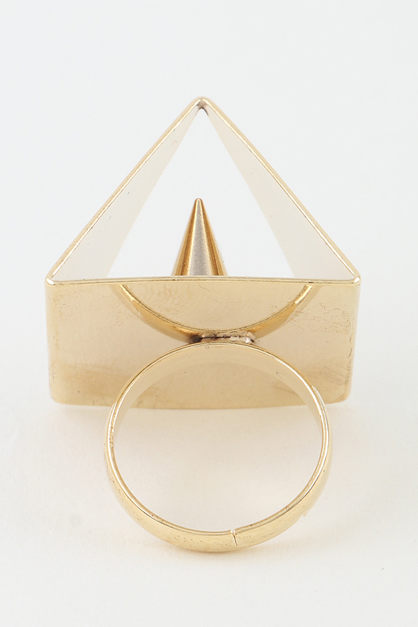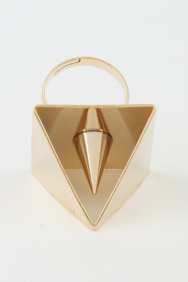 - * This Abstract Pyramid Spike Ring from H&D Accessories showcases a striking, architectural design. It features a bold, angular pyramid - shaped body, with a sharp spike centered inside the pyramid's hollow space. The ring band is sleek and simple, contrasting yet complementing the dramatic, three - dimensional pyramid structure. It's a statement piece perfect for elevating edgy, contemporary outfits, whether worn to a fashion - forward event, a night out, or to add an avant - garde touch to everyday looks.