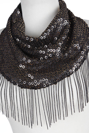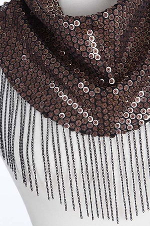 Sequin All Over Scarf with Tassel Chain Detail 5JAG