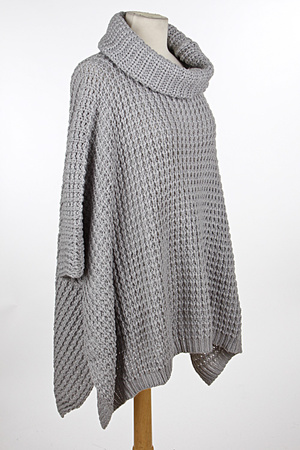 Turtle Neck Rolled Button Down Poncho 5IAB