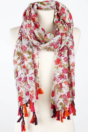 Flower Garden Print Tassel End Scarf 5DAF