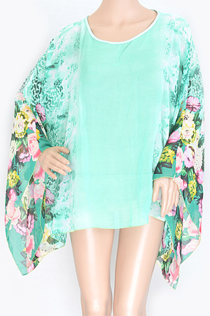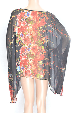 Flower Blossom Printed Sheer Poncho