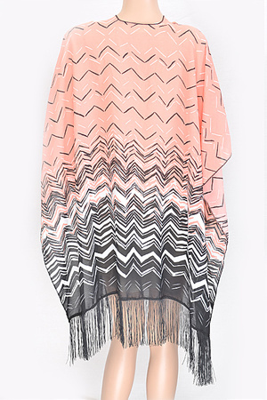 Gradient Color Chevron Print Fringe Poncho