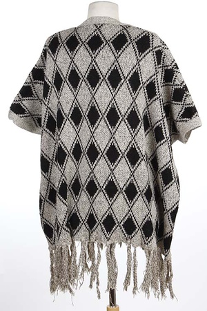 Multicolor Geometric Print Fringe Poncho