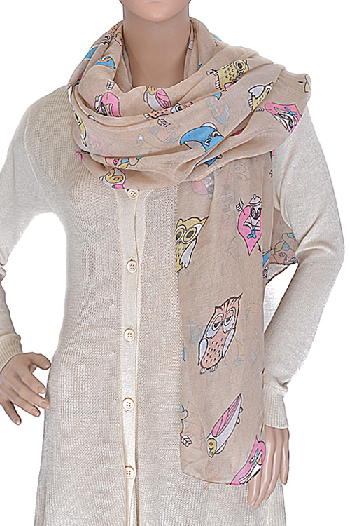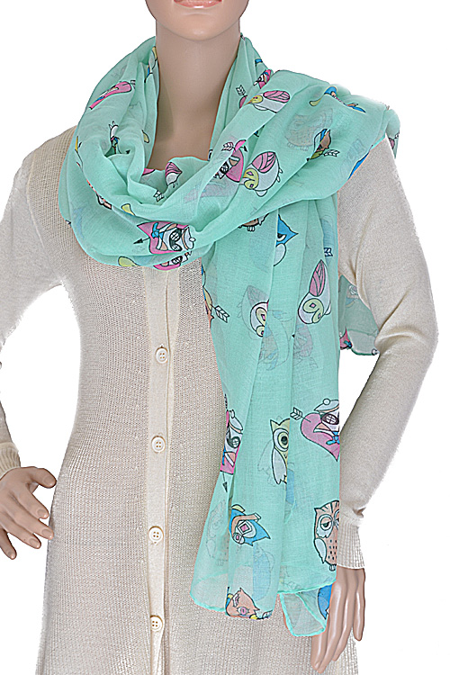 - * Colorful Owl Printed Scarf