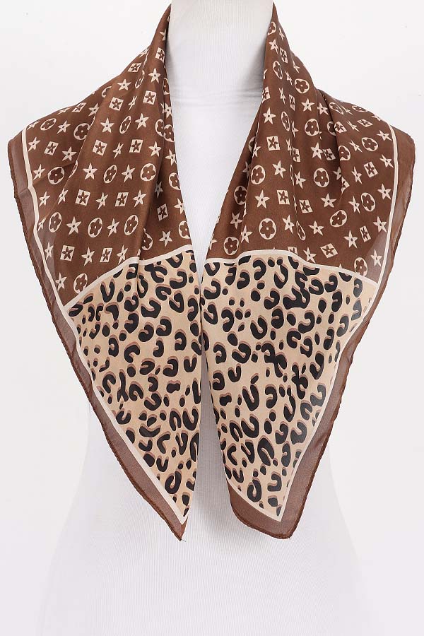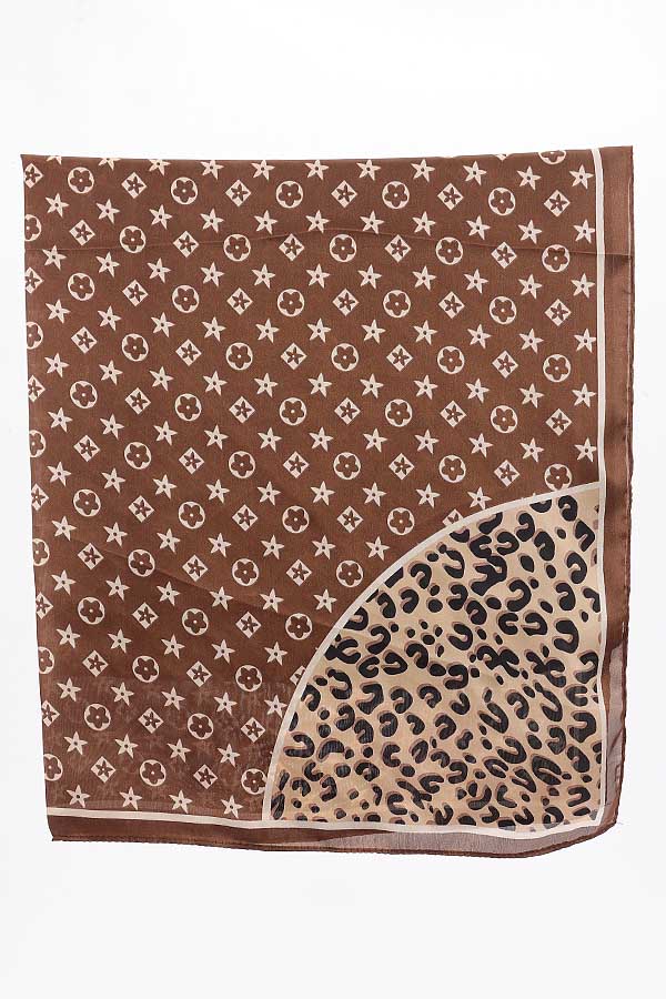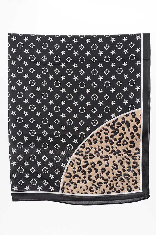 - * This Multi Print Bandana from H&D Accessories is a trendy and versatile accessory. It showcases a striking combination of bold patterns, including star motifs and leopard prints, set against a contrasting background. The soft fabric drapes elegantly, making it a perfect addition to any outfit.