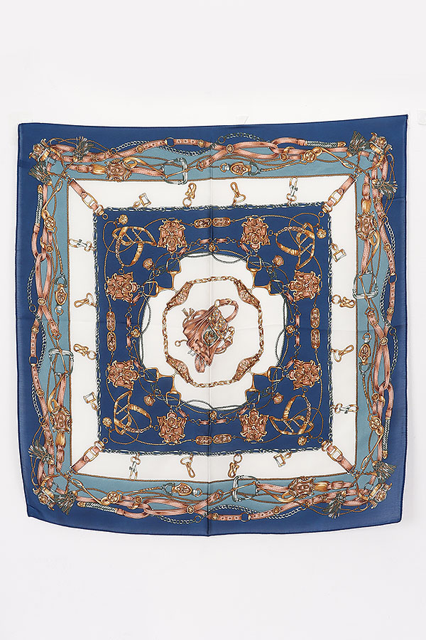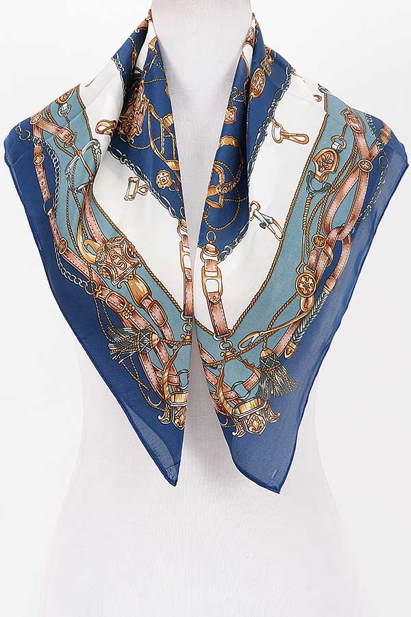 - * This is a Multi Print Bandana from H&D Accessories. It showcases an intricate design with layered patterns, including ornate chains, decorative motifs, and a central focal element, all arranged in a sophisticated square layout. This bandana is highly versatile for various scenarios—you can drape it around your neck to add a touch of luxury to a formal outfit when attending a gala, tie it as a headscarf for a glamorous look during a weekend brunch, or even use it as a stylish accent on your handbag when going for a high-end shopping spree. Its multi-print design makes it a standout piece that can effortlessly elevate your style in both everyday and special occasions.