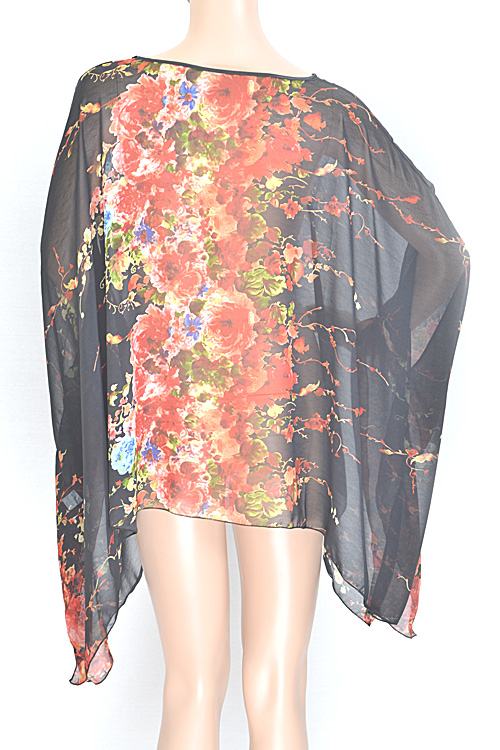 - * Flower Blossom Printed Sheer Poncho * One Size