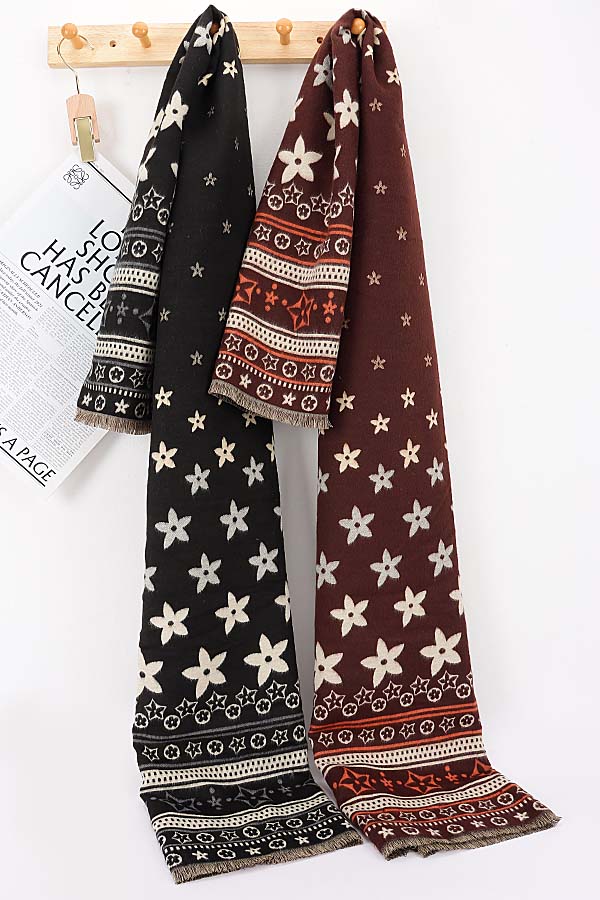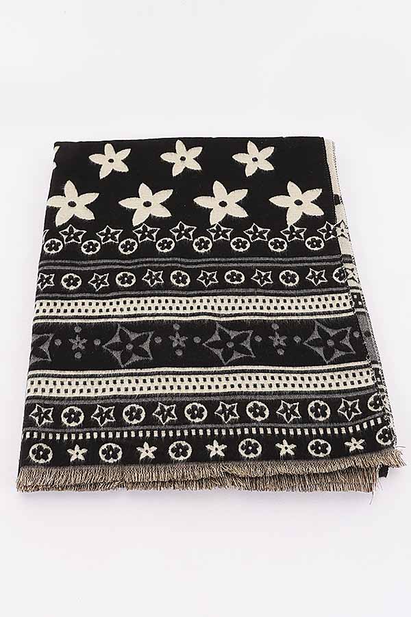 - * This Multi Print Scarf from H&D Accessories features a rich tapestry of patterns, including stylized floral motifs, star accents, and intricate geometric borders arranged in horizontal bands, creating a layered, visually engaging design. Woven from a soft, substantial fabric and finished with a fine fringe, it can be draped as a cozy shawl over a sweater for a casual weekend walk or wrapped elegantly around the neck to elevate a dinner outfit, making it a versatile accessory for seasonal transitions