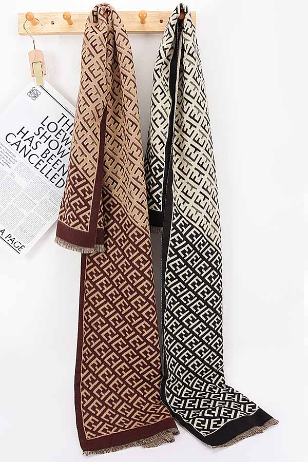 - * This Multi Print Scarf from H&D Accessories features an intricate, interlocking geometric pattern that creates a striking, timeless visual appeal. It is crafted with a soft, draped fabric and finished with delicate fringe detailing along the edges, making it a versatile layering piece. Perfect for elevating both casual weekend outings and polished office looks, it offers effortless style and warmth.
