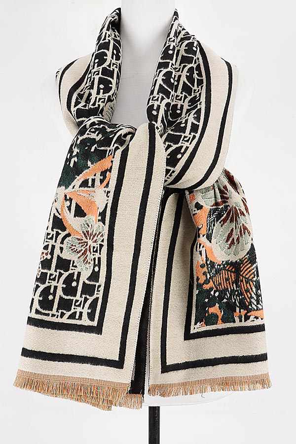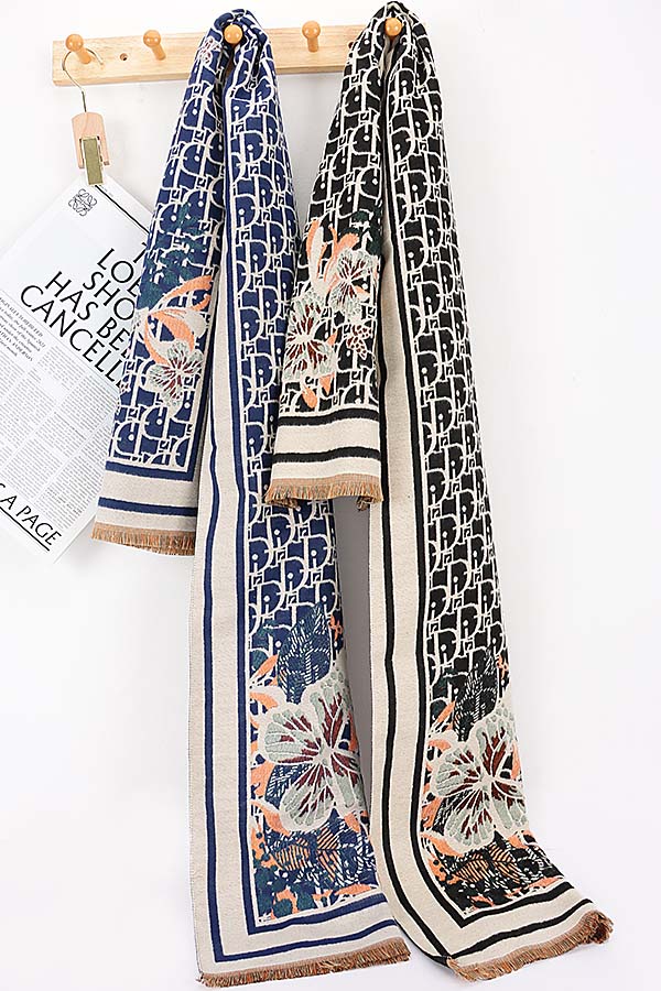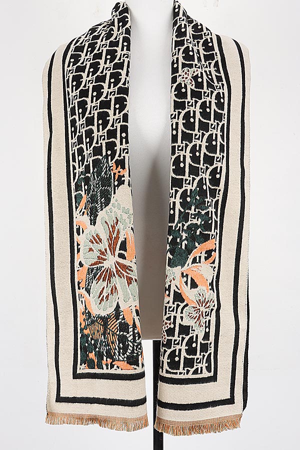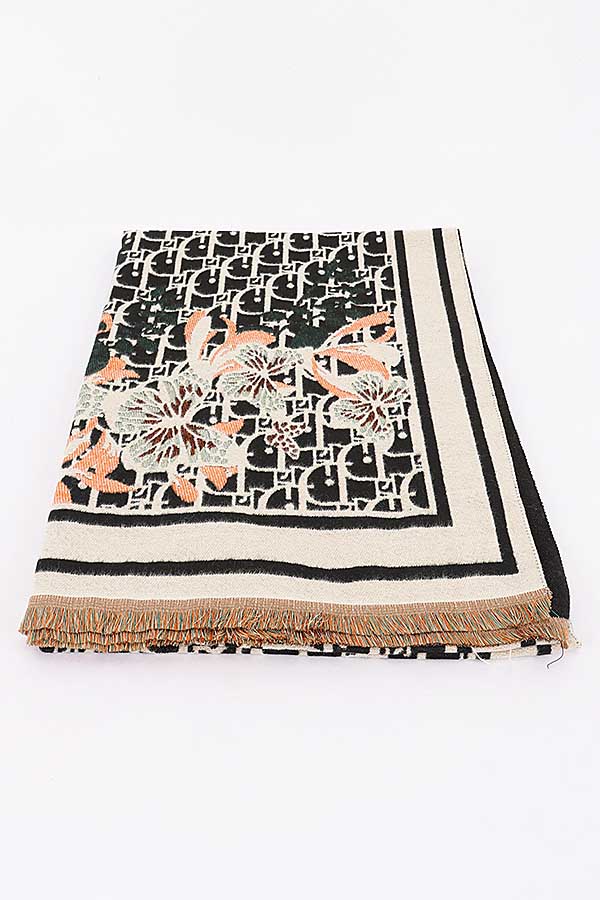 - * This Multi Print Scarf from H&D Accessories showcases a striking mix of bold geometric lattice motifs and lush floral embroidery, creating a rich, layered visual texture. It features a structured yet soft drape, finished with fine fringing along the hem for a refined touch. Ideal for adding an artistic flair to daytime brunch looks or evening dinner outfits, it can be styled as a shawl or open-front wrap for effortless versatility.