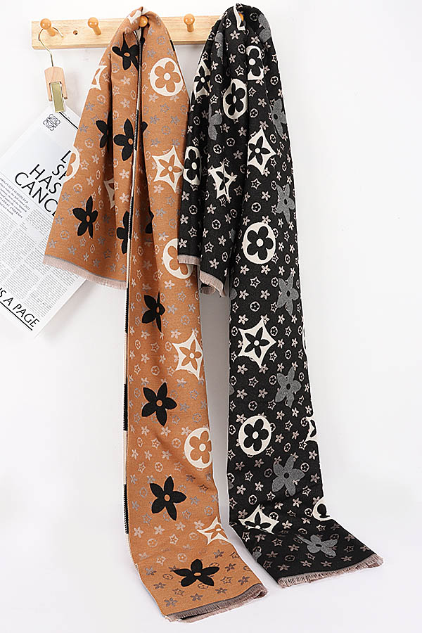 - * This Multi Print Scarf from H&D Accessories features an all-over mix of iconic floral, star, and monogram-inspired motifs, creating a sophisticated and eye-catching look. Designed with a lightweight, draped silhouette and finished with delicate frayed edges, it is perfect for elevating everyday outfits, whether draped over the shoulders for a chic office look or paired with outerwear for added warmth and style during weekend outings.