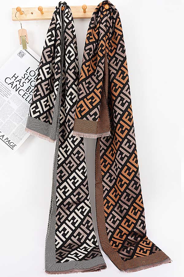 - * This Multi Print Scarf from H&D Accessories features an eye-catching combination of a bold interlocking logo pattern and classic stripe detailing, creating a modern yet timeless aesthetic. The generously sized, lightweight design drapes effortlessly, making it ideal for elevating everyday outfits or adding a polished finish to evening ensembles. It is perfect for both casual outings and more formal occasions, offering versatile styling options as a shawl, wrap, or traditional scarf.