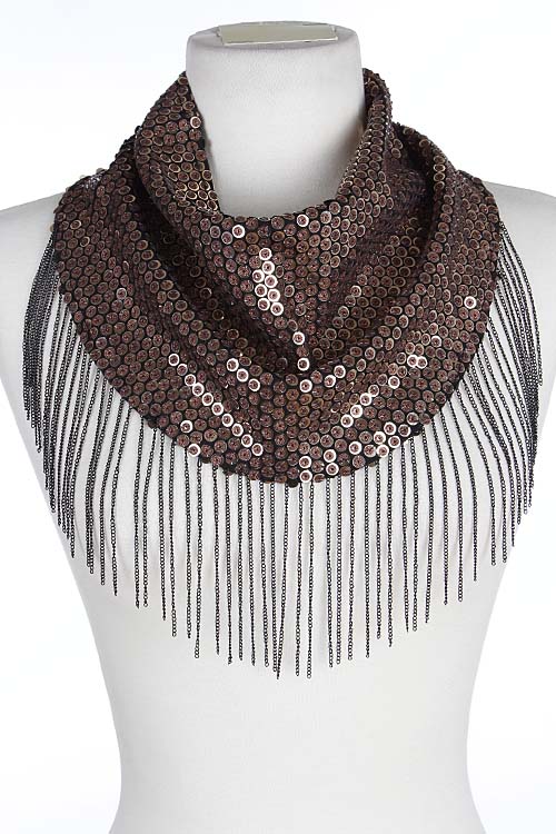 - *Sequin Print Scarf with Chain Tassel Detail 5JAG